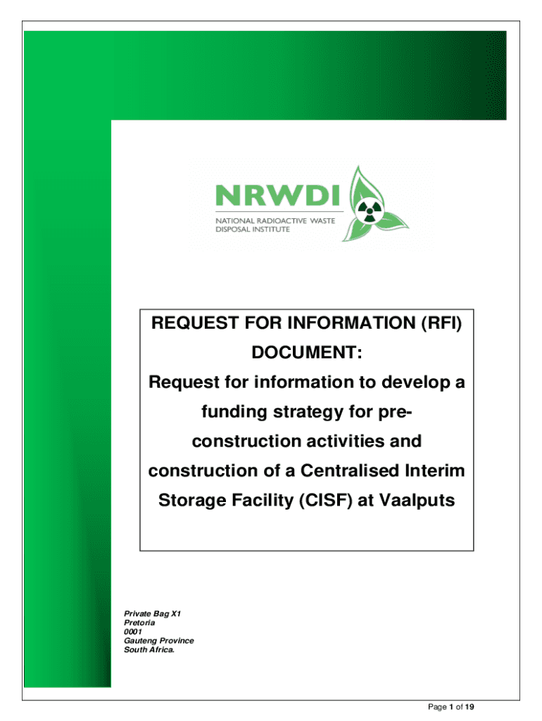 REQUEST FOR INFORMATION (RFI) DOCUMENT: Request for information to develop a funding strategy for preconstruction activities and construction of a Centralized Interim Storage Facility (CSF) at VaalputsPrivate