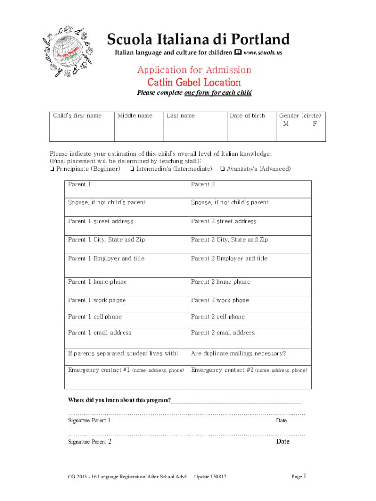 Get the free Apply to Preschool to 5th GradePortland, Oregon