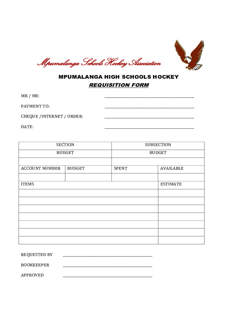MPUMALANGA HIGH SCHOOLS HOCKEYREQUISITION FORM