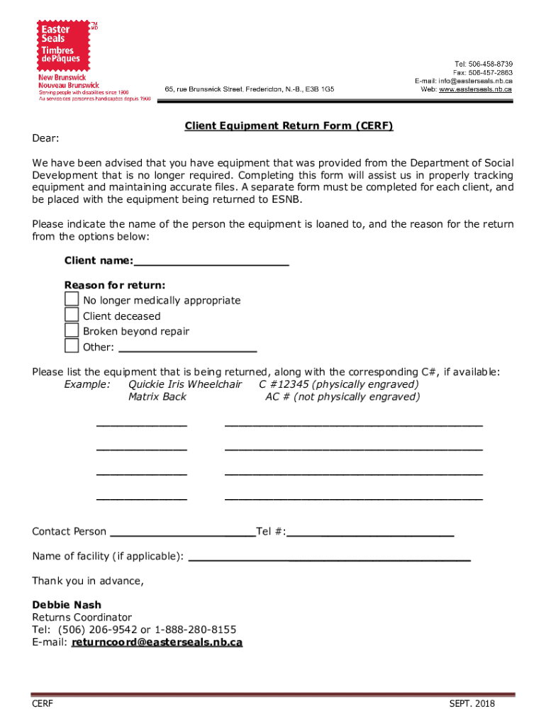 Get the free Client Equipment Return Form (CERF)