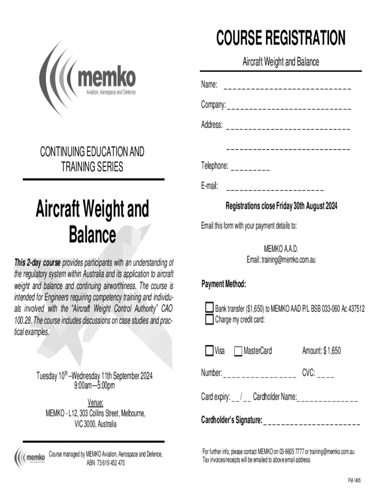 COURSE REGISTRATION Aircraft Weight and Balance Name:___Company: _ _ _ _ _ _ _ _ _ _ _ _ _ _ _ _ _ _ _ _ _ _ _ _ _ _ _ _ Address: _ _ _ _ _ _ _ _ _ _ _ _ _ _ _ _ _ _ _ _ _ _ _ _ _ _ _ _CONTINUING