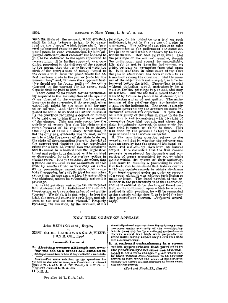 RE ISL\”G V. NEW YOU.189l.IL.&;W. R. CO.133with the demand, the accused, when arrested, protege, or Ellis objection to a trial on such Eha11 be taken before 8. Judge, to be exam IR.:document, is