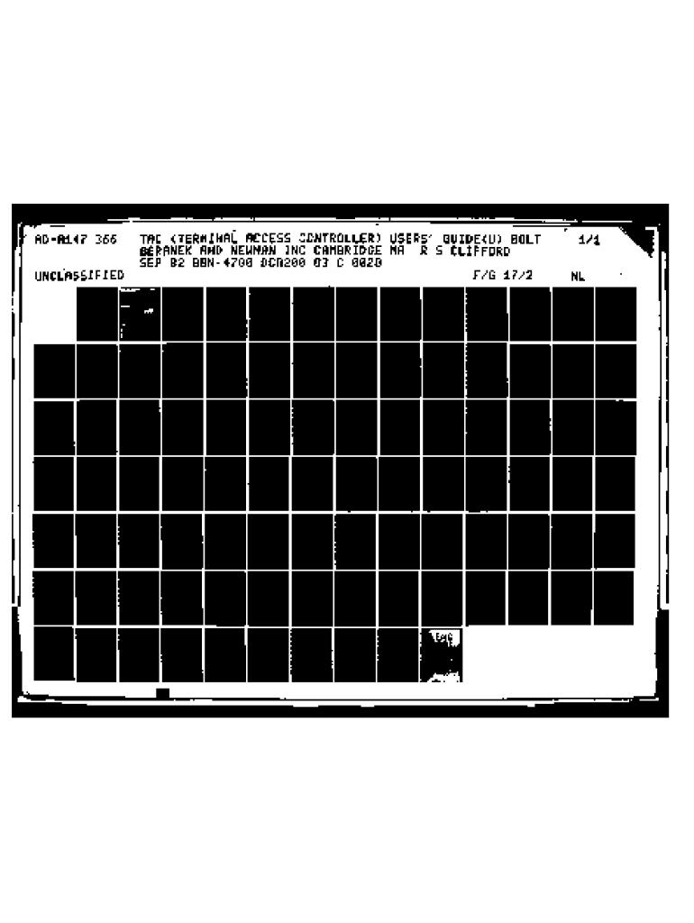 UNCLASSIFIED TAC (TERMINAL ACCESS CONTROLLER) USERS\' GUIDE(U) BOLTBERANEK AND NEWMAN INC CAMBRIDGE MRI/IR S CLIFFORD82 BBN4?80 DC20083C0028EEahahahhhahEE