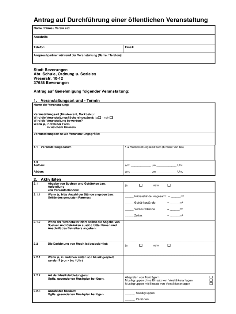 Ant rag AUF Durchfhrung anger ffentlichen Veranstaltung