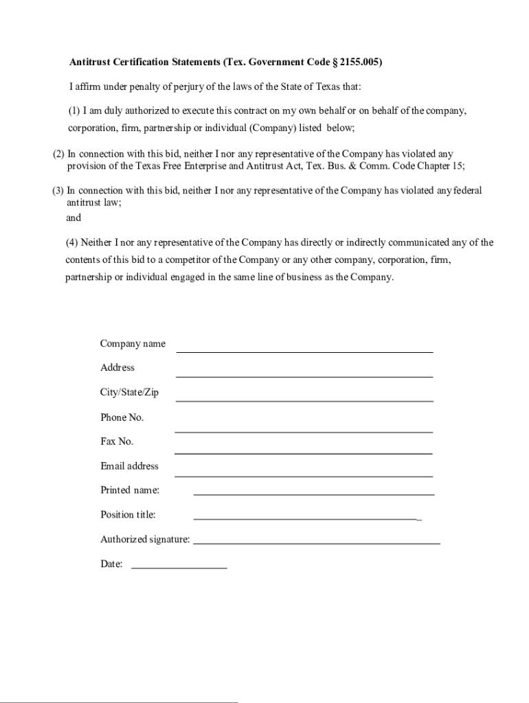 How to fill out antitrust certification statements tex