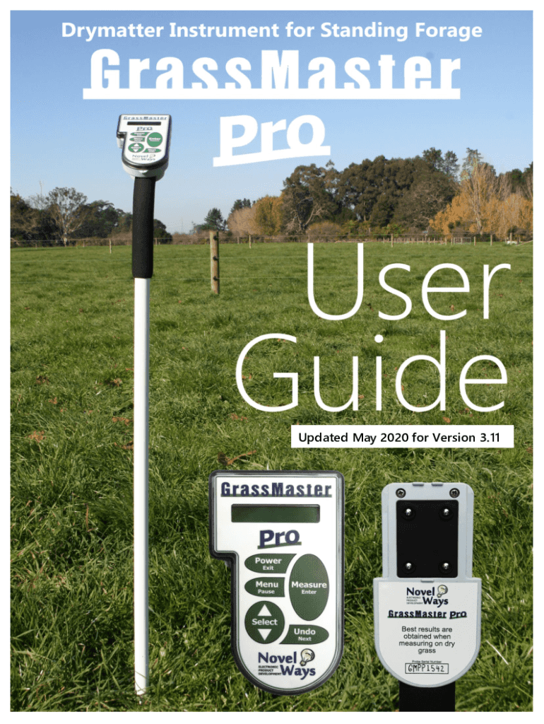 Updated May 2020 for Version 3.11Contents 1. Introduction and Features Kit Contents Quick Start Guide3 4 52. GrassMaster Overview What is Dry Matter? How does the Grass Master Pro work?6 6 83. Using