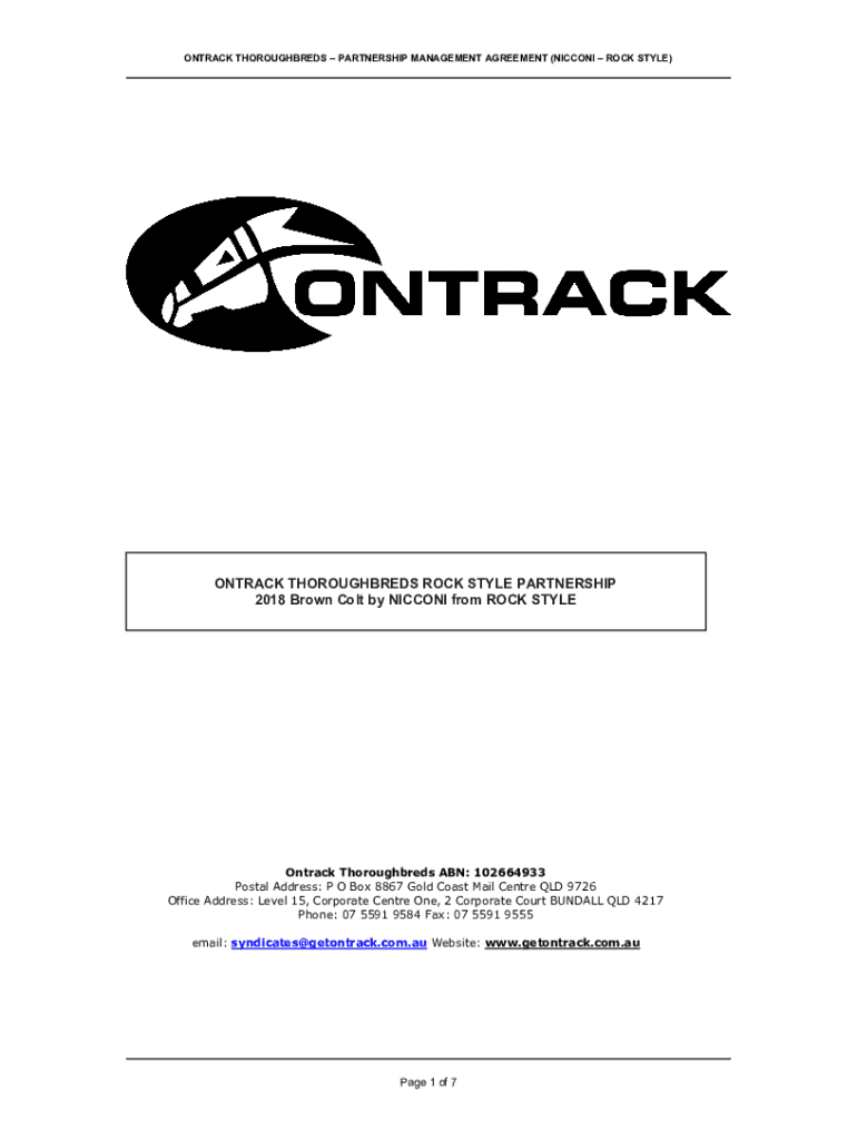 TRACK THOROUGHBREDS PARTNERSHIP MANAGEMENT AGREEMENT (NICCOLO ROCK STYLE)TRACK THOROUGHBREDS ROCK STYLE PARTNERSHIP 2018 Brown Colt by NICCOLO from ROCK STYLEOntrack Thoroughbreds ABN: 102664933 Postal