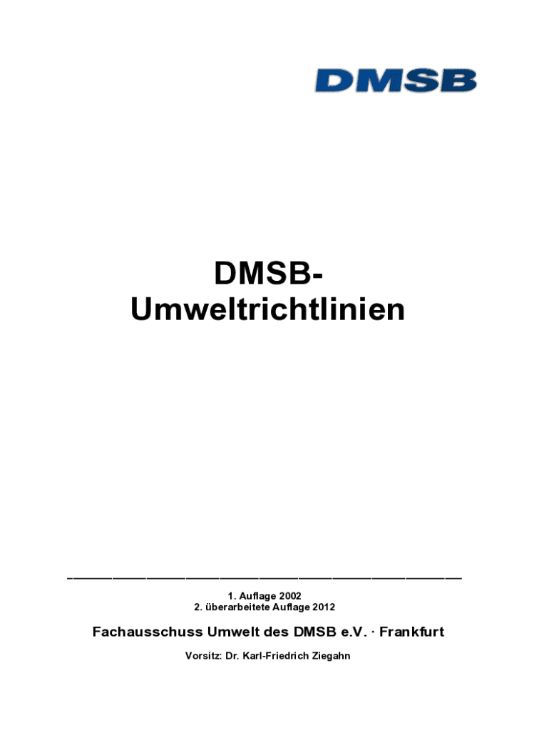 Varsity: Dr. KarlFriedrich ZiegahnVorwort EU den DMSBUmweltrichtlinien