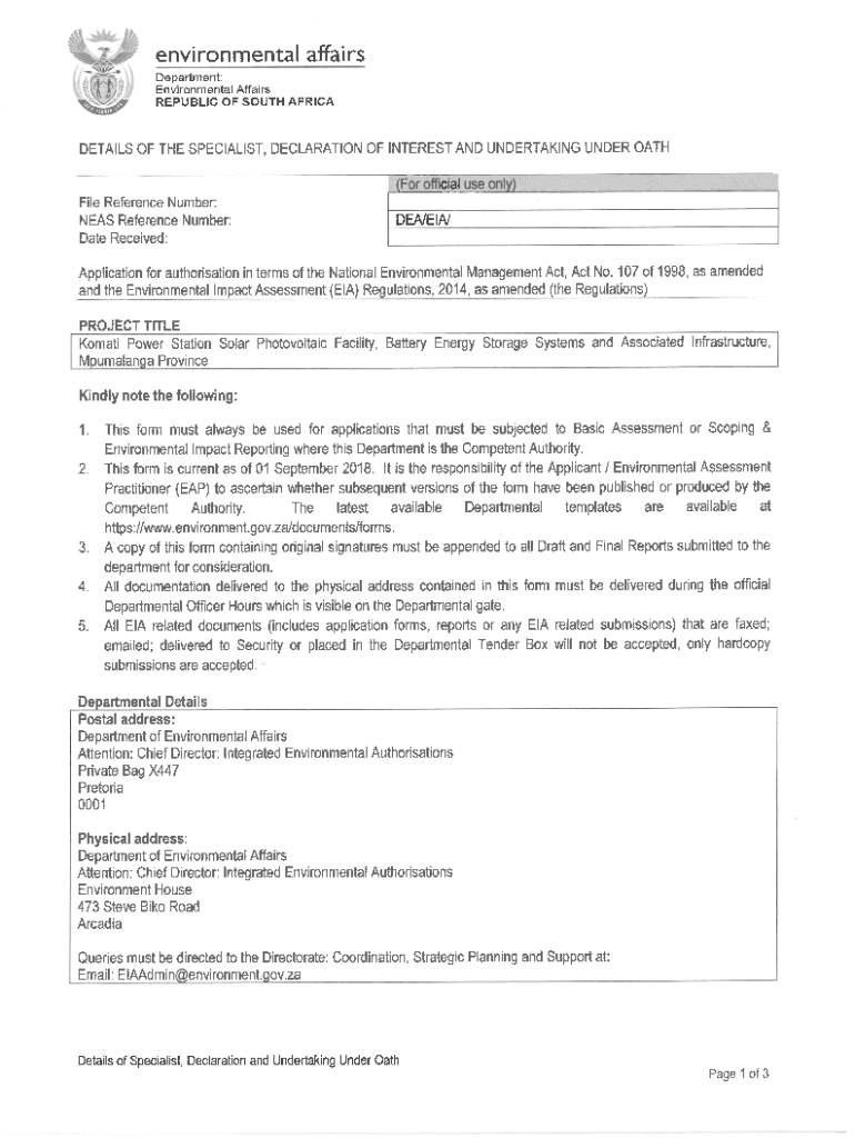 DETAILS OF THE SPECIALIST, DECLARATION OF INTEREST AND UNDERTAKING UNDER OATH