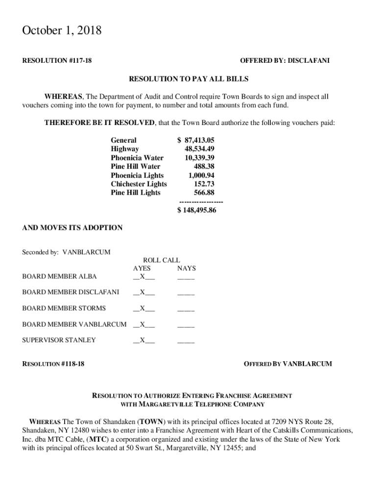 RESOLUTION #11718OFFERED BY: DISCLAFANIRESOLUTION TO PAY ALL BILLS