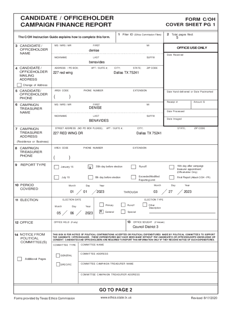 The information that must be reported on the search page in Dallas includes the filer’s contact information, a description of the subject of the search, and any other relevant details related to the inquiry.