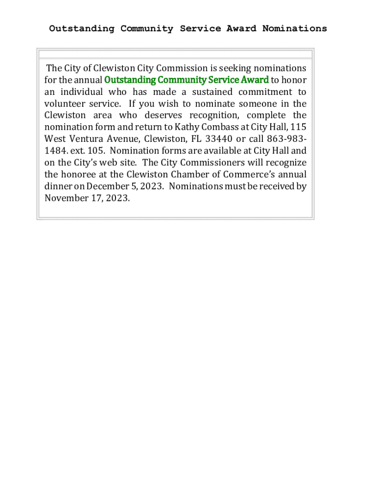 Outstanding Community Service Award Nominations City of Lewiston City Commission is seeking nominations for the annual Outstanding Community Service Award to honor an individual who has made a sustained