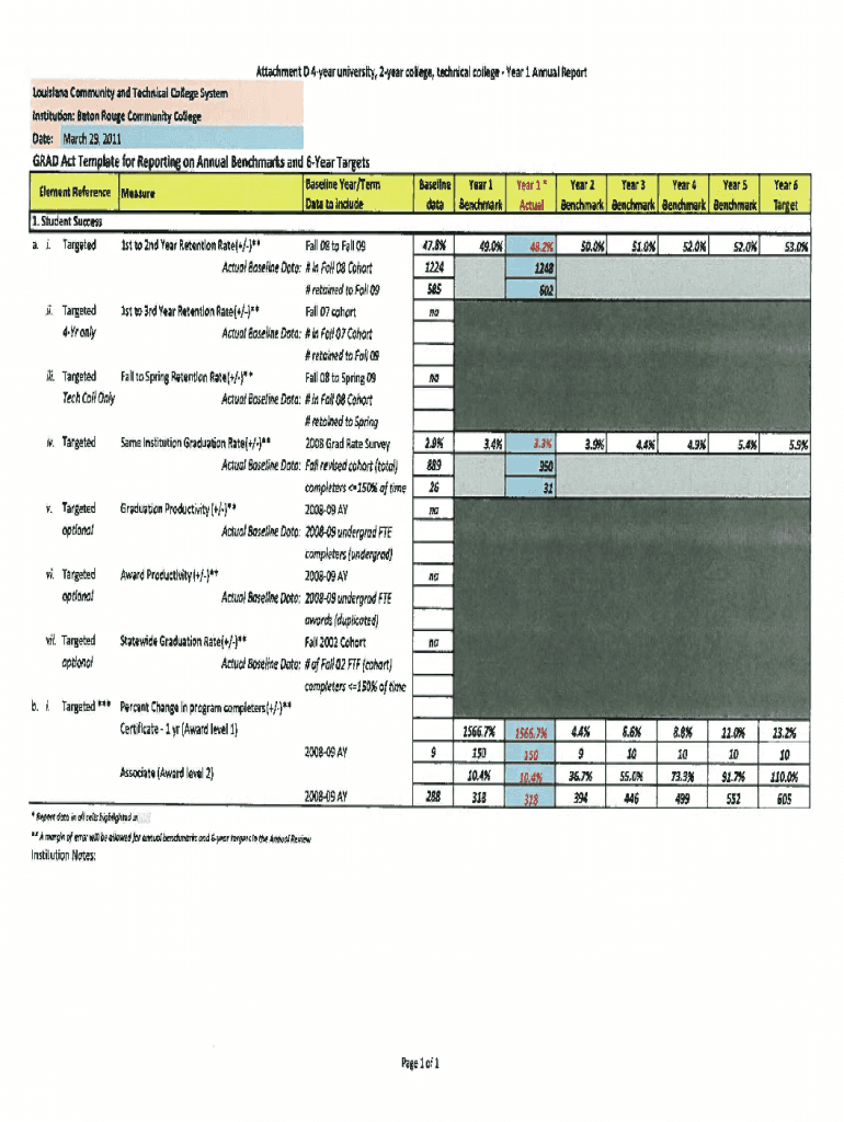 Attachment D 4year university, 2year college, technical college Year 1 Annual Report l.ouislana Community and Technical College System Institution: Baton Rouge Community College Date: March 29, 2011GRAD