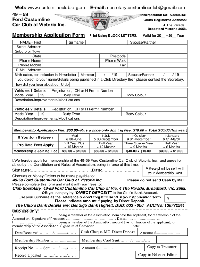 Web: www.customlineclub.org.auEmail: secretary.customlineclub@gmail.com49 59 Ford Customline Car Club of Victoria Inc.Incorporation No: A0018043T Clubs Registered Address: 4 The Parade. Broadford
