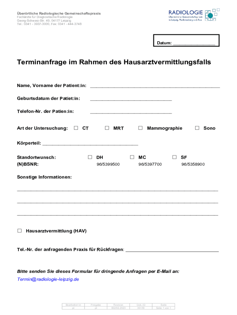 Holen Sie sich kostenlos Terminanfrage im Rahmen des Hausarztvermittlungsfalls