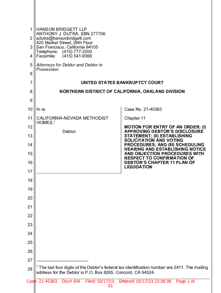 1 HANSON BRIDGETT LLP ANTHONY J. DUTRA, SBN 277706 2 adutra@hansonbridgett.com 425 Market Street, 26th Floor 3 San Francisco, California 94105 Telephone: (415) 7773200 4 Facsimile: (415) 5419366 5