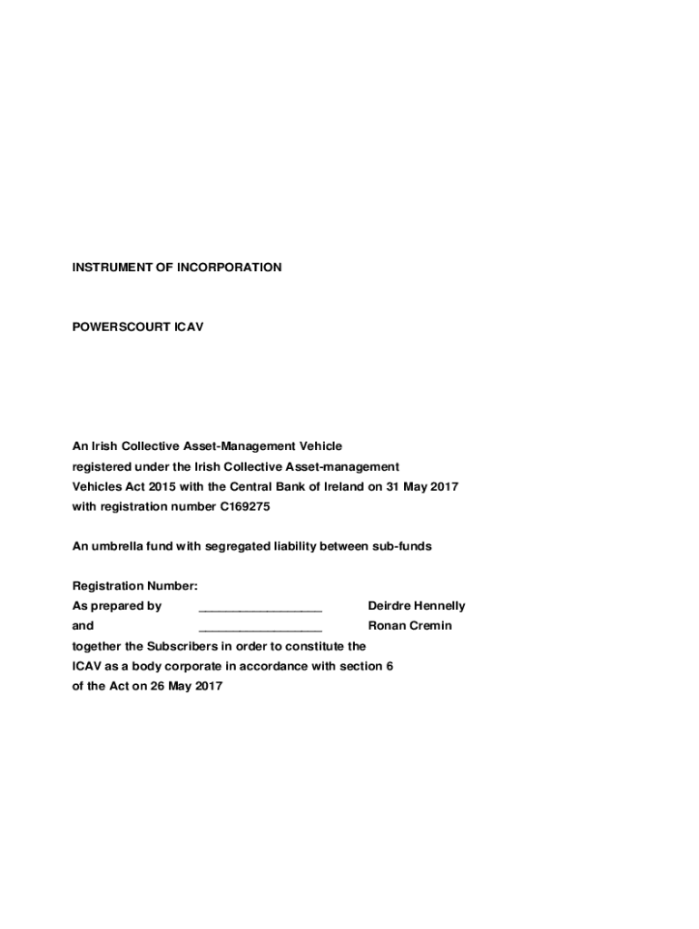 Get the free INSTRUMENT OF INCORPORATION POWERSCOURT ICAV ...