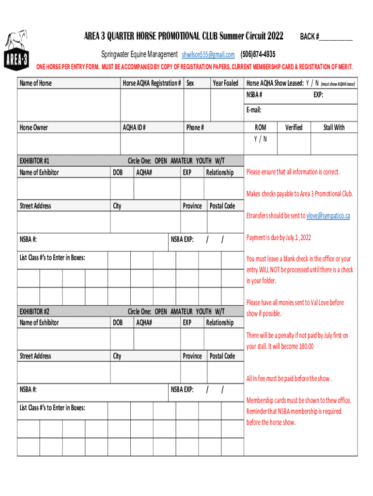 Get the free Area 3 Quarter Horse Promotional Club - Summer Circuit