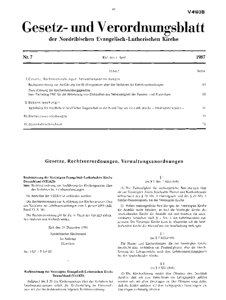 49V4193BGesetz UND Verordnungshlattder Nordelbischen EvangelischLutherischen Circle