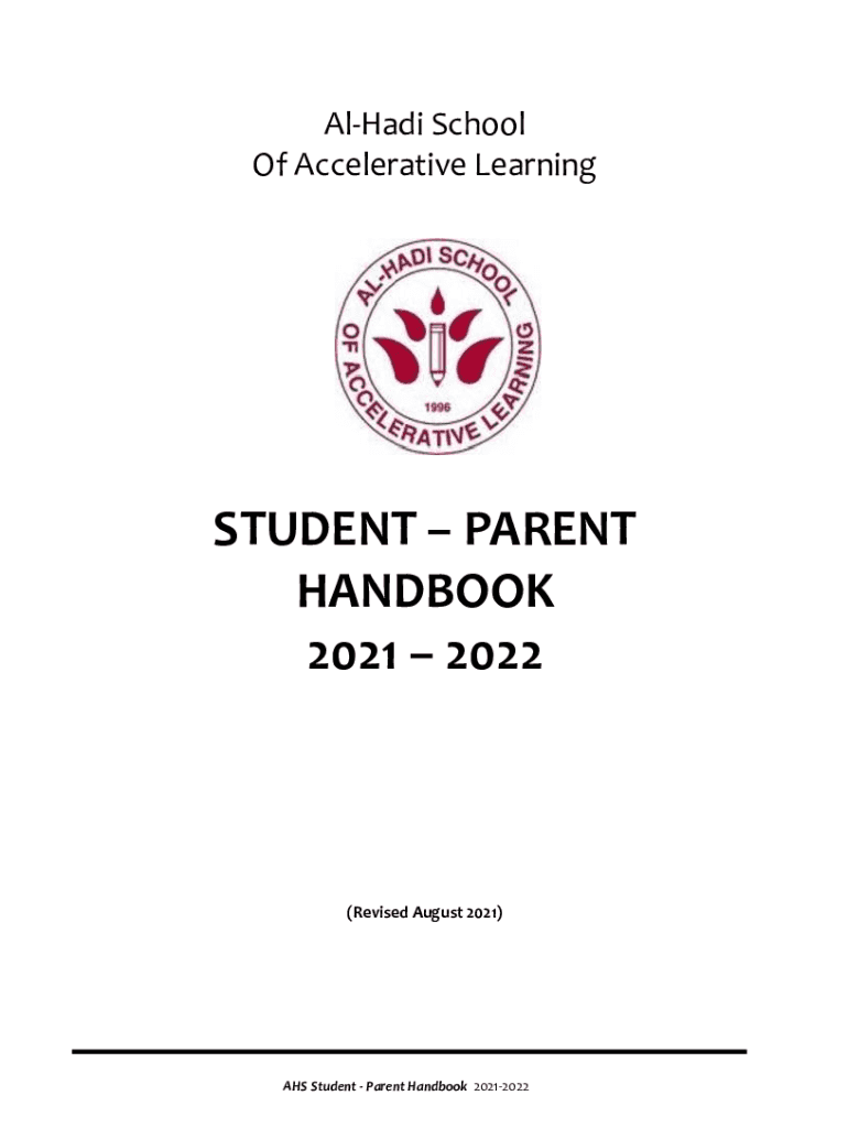 All students and their parents or guardians at alhadi school need the student-parent handbook.