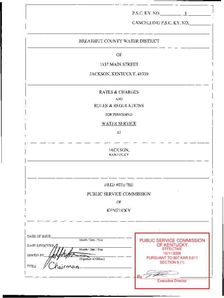 Get the free Breathitt County Water DistrictServing Jackson, KY and ... - psc state ky