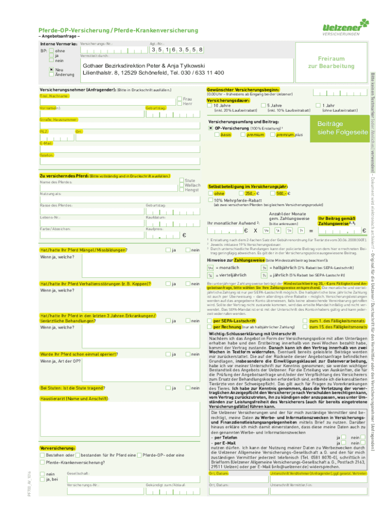 Das Formular Pferd amp Reiter kann online oder in Papierform ausgefüllt werden.