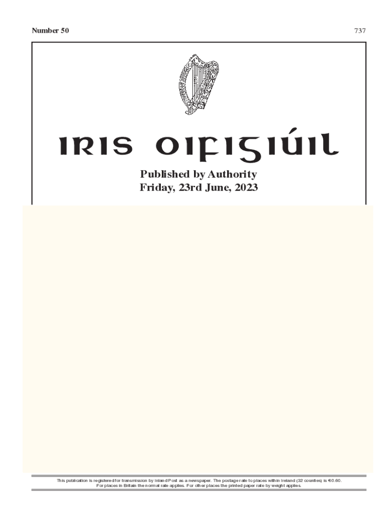 Friday, 23rd June, 2023This publication is registered for transmission by Inland Post as a newspaper. The postage rate to places within Ireland (32 counties) is