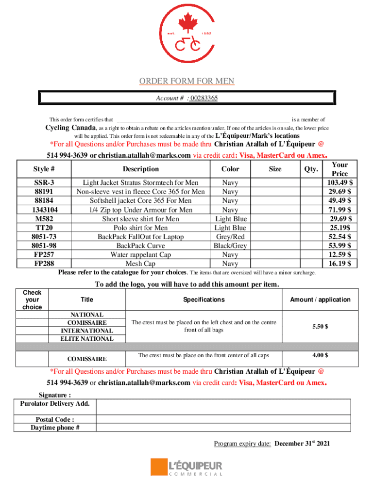 This order form certifies that ___ is a member cycling Canada, as a right to obtain a rebate on the articles mention under. If one of the articles is on sale,