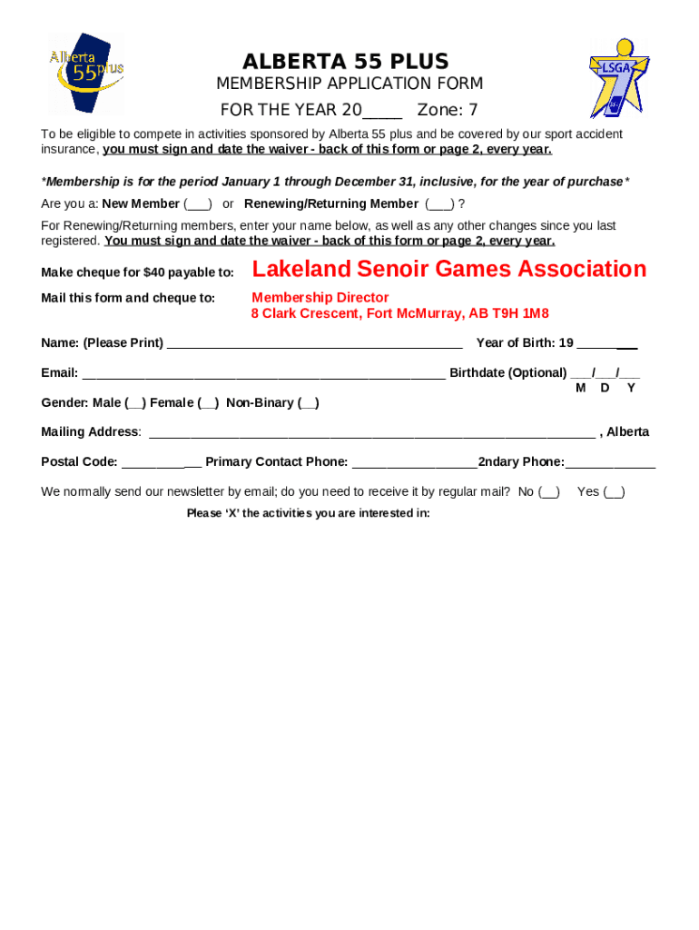 Download Zone 7 Membership . - Alberta 55 plus template instructions