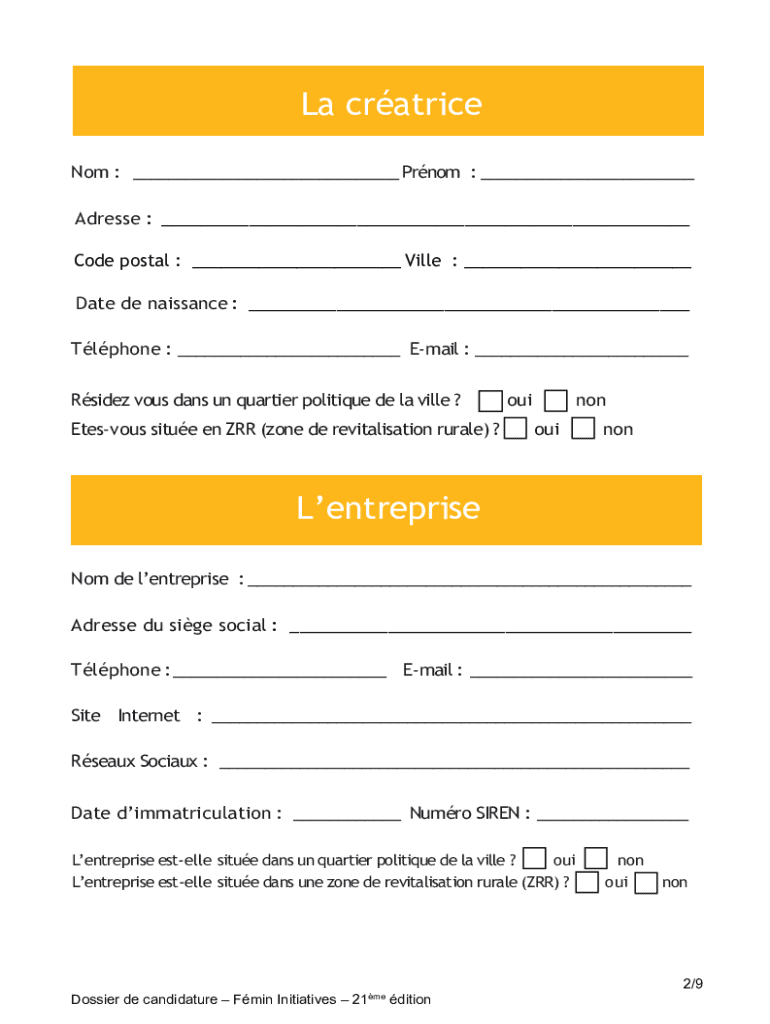 Concourse de la CREATION et de la REPRISE enterprise AU FMI NIN en EureetLoirDOSSIER DE CANDIDATURE