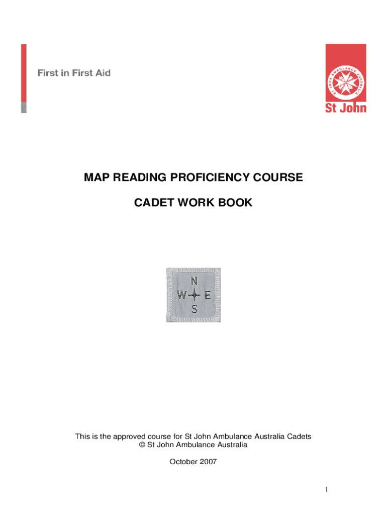 MAP READING PROFICIENCY COURSE CADET WORK Booths is the approved course for St John Ambulance Australia Cadets St John Ambulance Australia October 20071CONTENTS Page Overview3Topic 1Introduction to