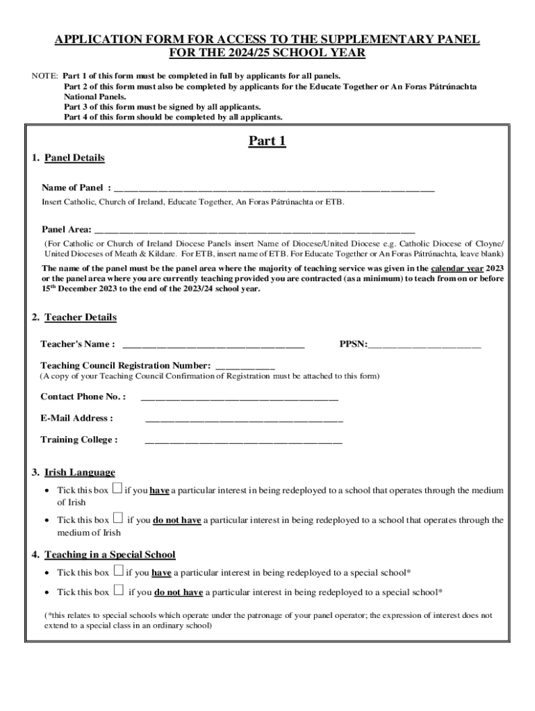 NOTE: Part 1 of this form must be completed in full by applicants for all panels.