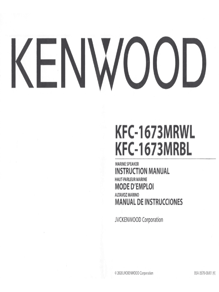 KENWOOD Corporation 2020 KENWOOD CorporationBSA357000/01 (K)IMPORTANT SAFETY