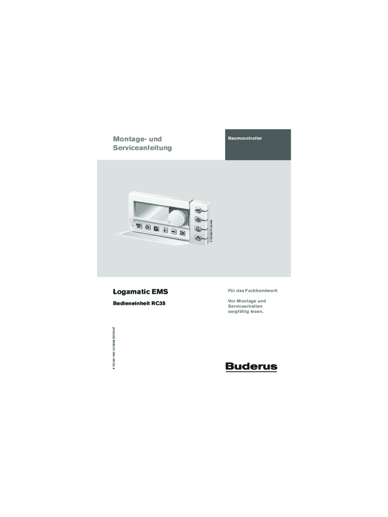 Serviceanleitung6 720 618 47700.1RSRaumcontrollerFr was FachhandwerkBedieneinheit RC35Vor Montage UND