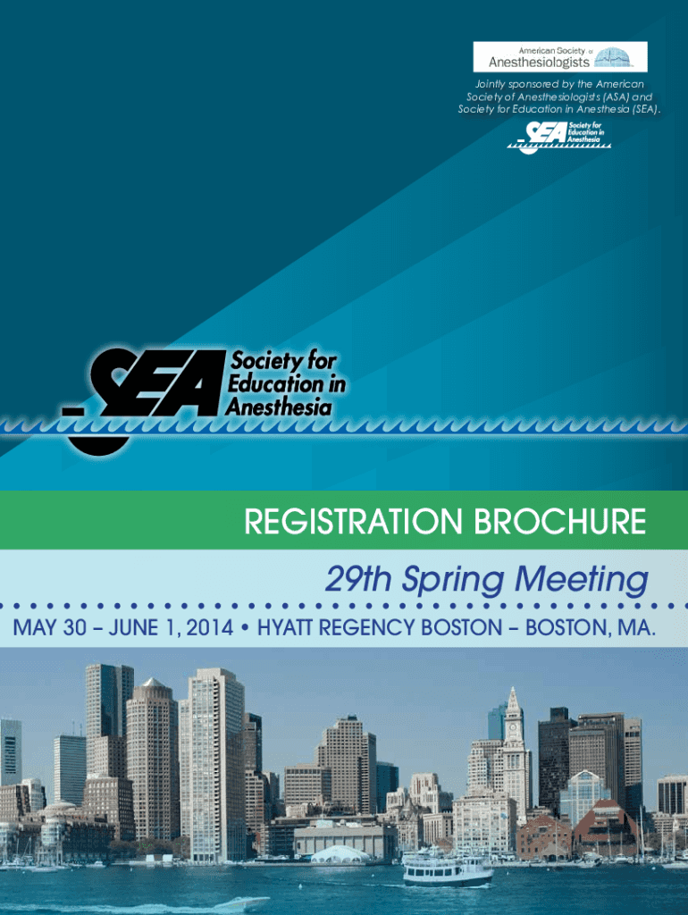 Jointly sponsored by the American Society of Anesthesiologists (ASA) and Society for Education in Anesthesia (SEA).REGISTRATION BROCHURE 29th Spring Meeting MAY 30 JUNE 1, 2014, HYATT REGENCY BOSTON