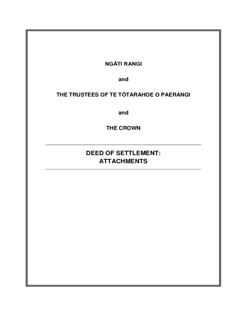 NGTI RANGI and THE TRUSTEES OF TE TTARAHOE O PAERANGIand THE CROWN ___DEED OF SETTLEMENT: ATTACHMENTS ___NGTI RANGI DEED OF SETTLEMENT: ATTACHMENTSTABLE OF CONTENTS 1.AREA OF INTEREST.22.DEED PLANS..43.EXCLUSIVE