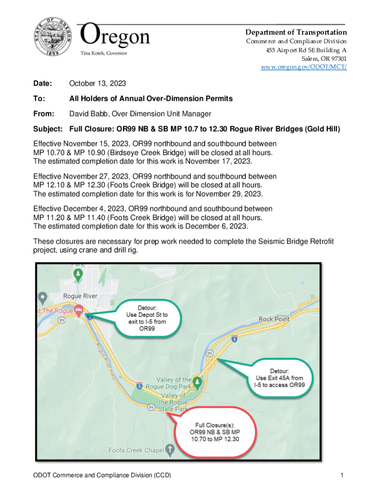 Department of Transportation Commerce and Compliance Division 455 Airport Rd SE Building A Salem, OR 97301 www.oregon.gov/ODOT/MCT/Date:October 13, 2023To:All Holders of Annual OverDimension PermitsFrom:David