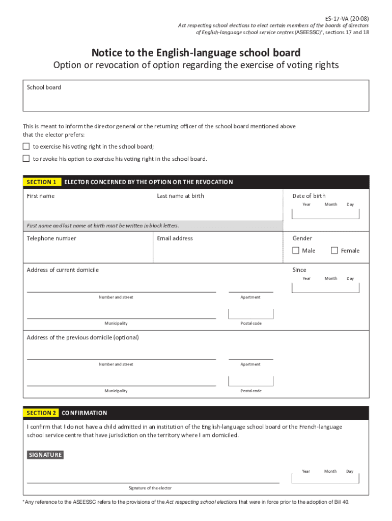 ES17VA (2008)Act respecting school elections to elect certain members of the boards of directors