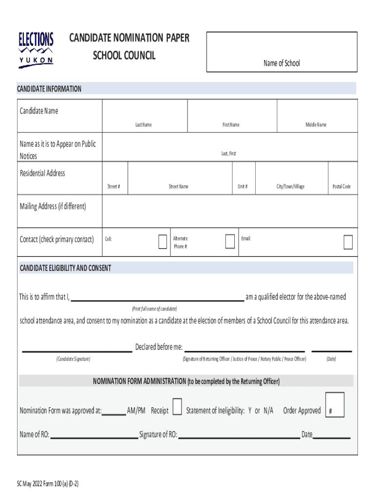 SCHOOL Councilman of SchoolCANDIDATE INFORMATION