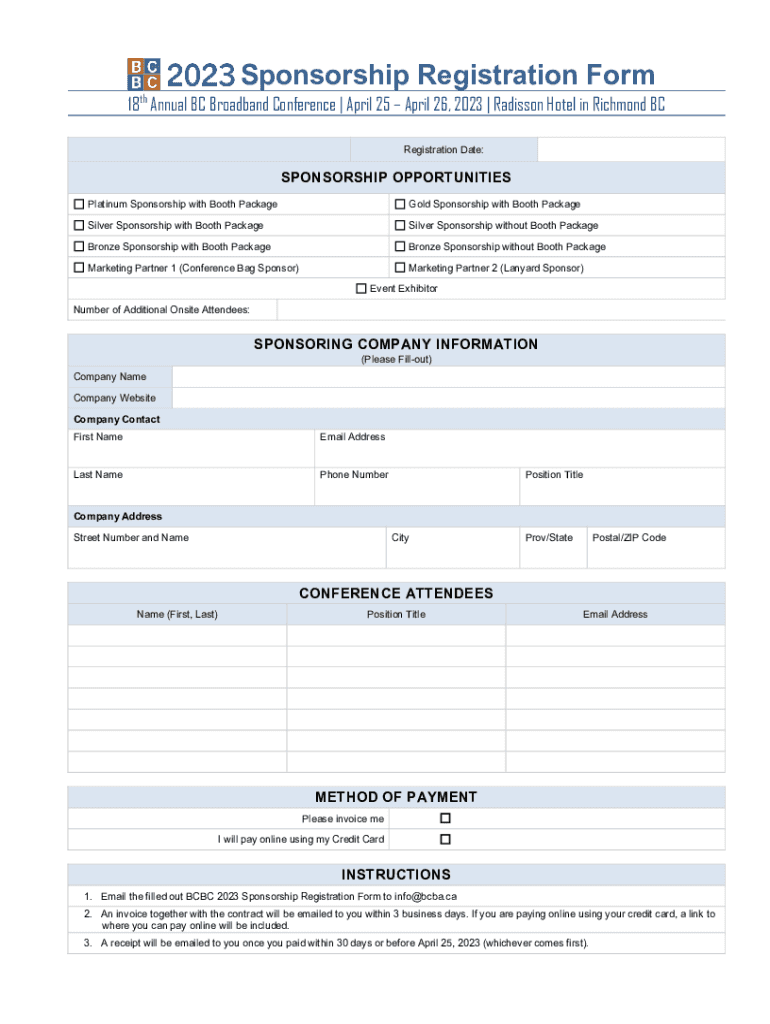 Sponsorship Registration Form18 Annual BC Broadband Conference | April 25 April 26, 2023 | Radisson Hotel in Richmond BC
