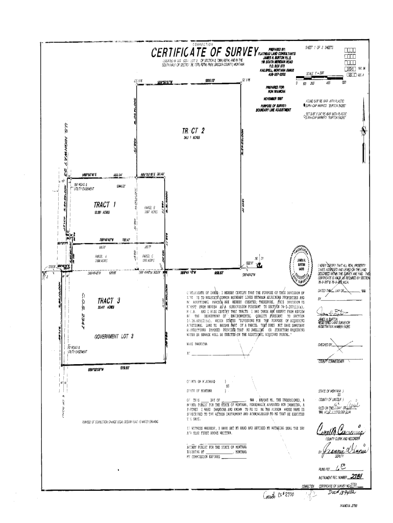 , n, Zi., .... CORRECTION Feet 1 OF 2 S/EITHER T\'/FIC A TE OF SUR VE y LOCATED IN us. Gov LOT 3 OF SECTION 4 T36N, R2? W, A/\'IJ N NE SIXTH HALF OF SECT/0: \' 36, T3? N, R2? W, PM. M, LINCOLN County,