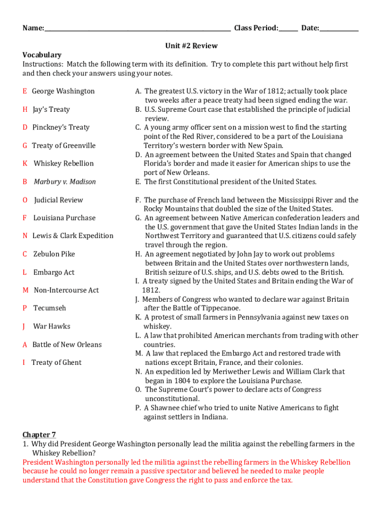 Name:___ClassPeriod:___Date:___ Unit#2Review Vocabulary Instructions:Matchthefollowingtermwithitsdefinition.Trytocompletethispartwithouthelpfirst andthencheckyouranswersusingyournotes. EGeorgeWashington