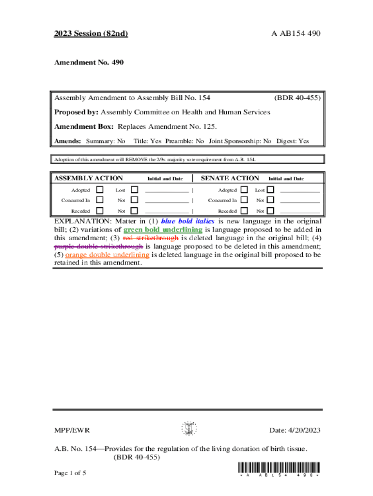 2023 Session (82nd)A AB154 490Amendment No. 490Assembly Amendment to Assembly Bill No. 154(BDR 40455)Proposed by: Assembly Committee on Health and Human Services