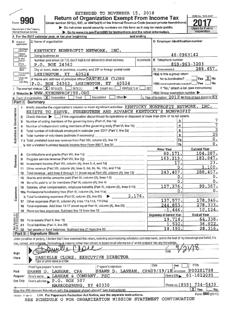 KENTUCKY NONPROFIT NETWORK, INC. Part III Statement of Program Service AccomplishmentsForm 990 (2017)123 44a460963142Page 2Check if Schedule O contains a response or note to any line in this Part