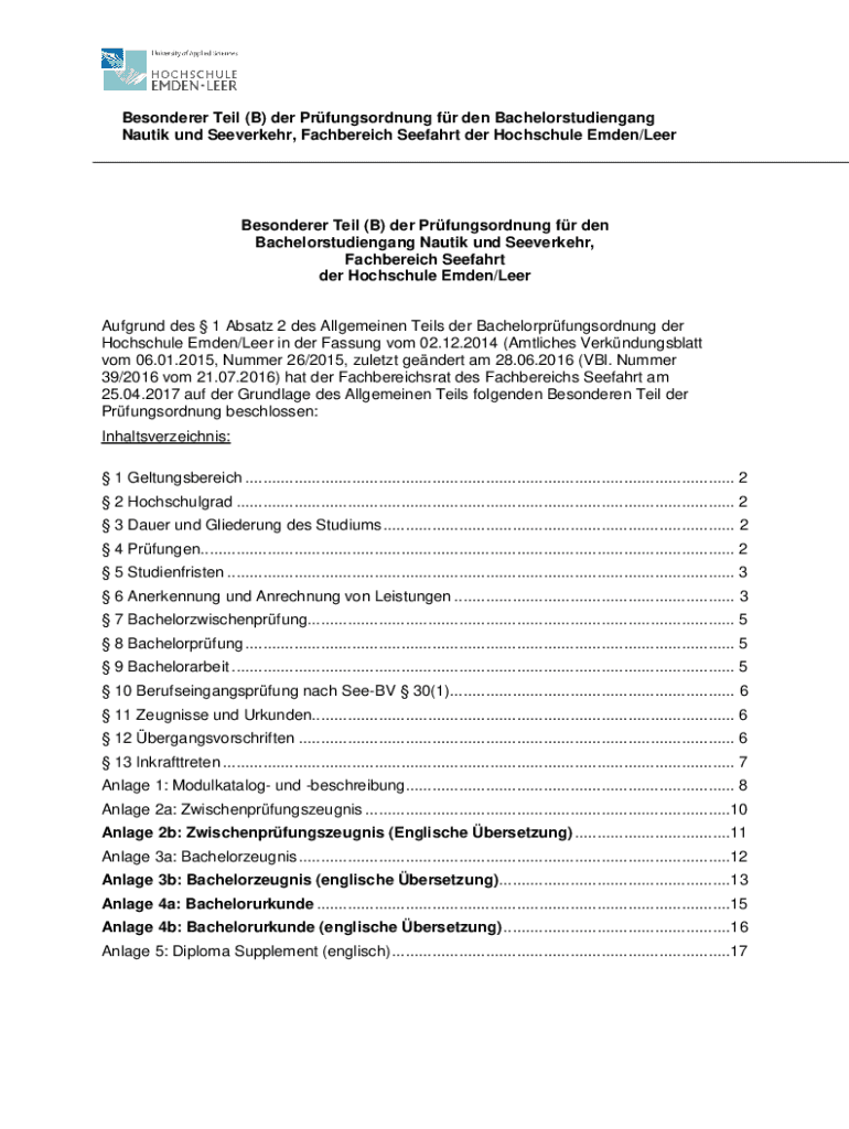 Batik UND Severer, Fachbereich Stewart her Hochschule Eden/LeerBesonderer Rail (B) her Prfungsordnung for den