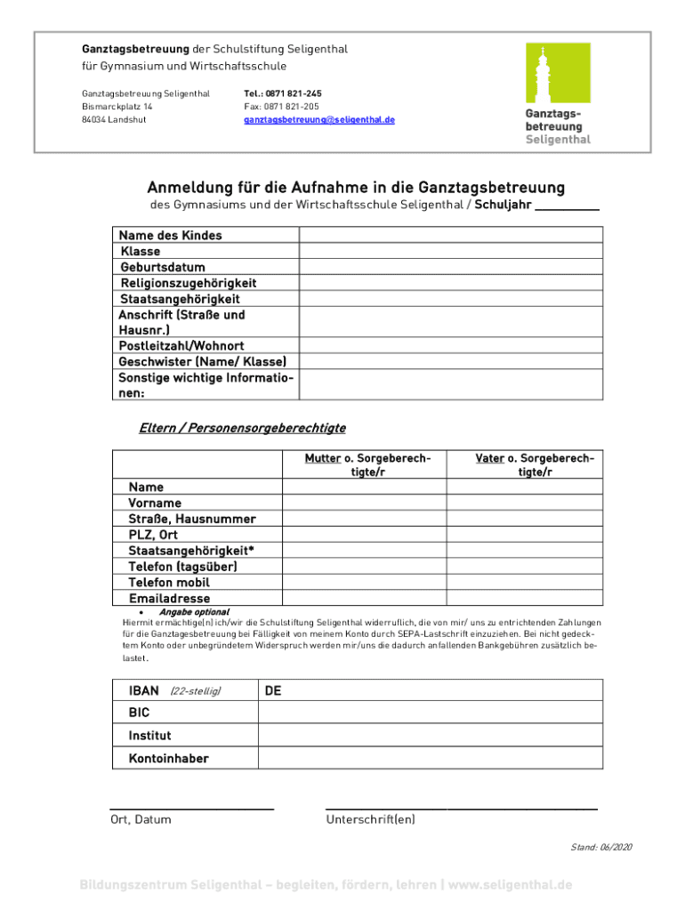 ganztagsbetreuung@seligenthal.deAnmeldung
