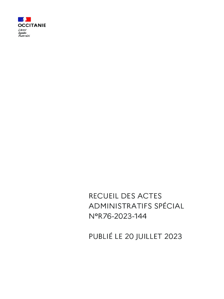 OCCITANIERECUEIL DES ACTS ADMINISTRATION SOCIAL NR762023144 PUBLIC LE 20 BULLET 2023Sommaire AS OCCITANIE / R762023062100005 Art ARSON n20233393 portent reject de l\'authorization de creation d\'UN