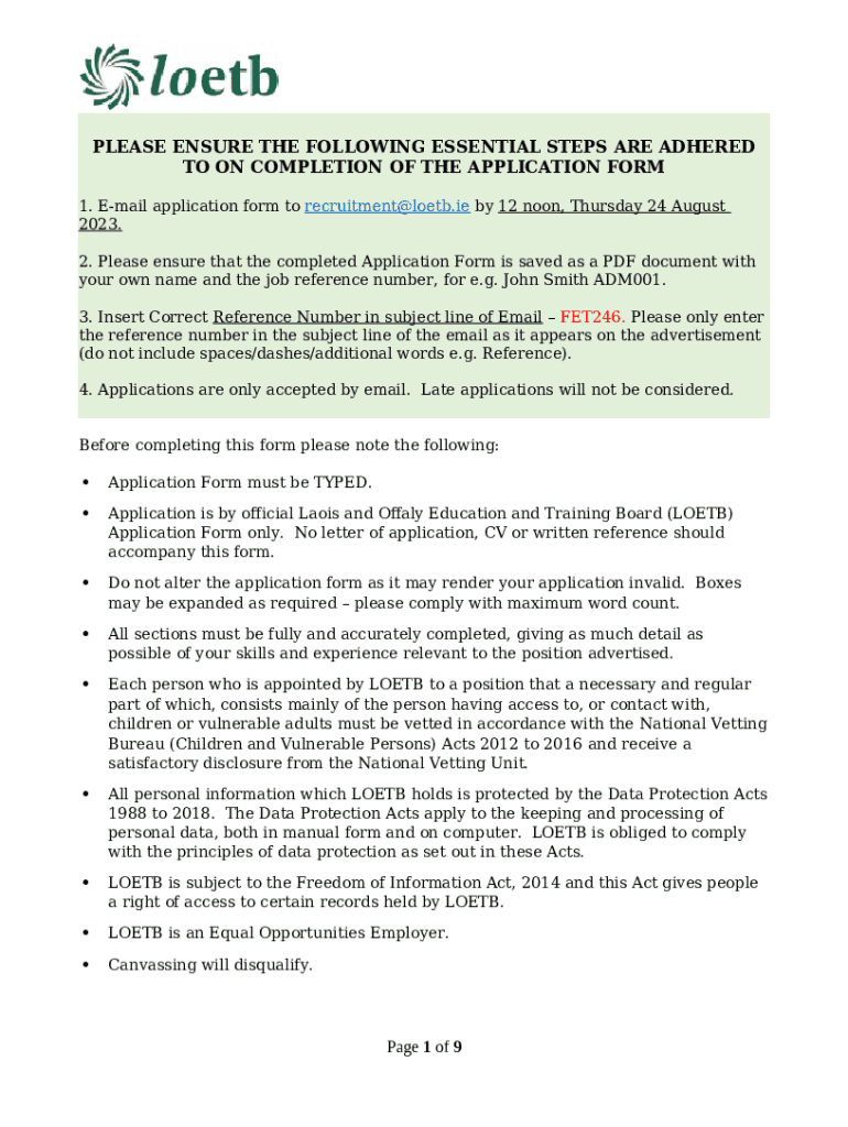 Insert Correct Reference Number in subject line of Email - FET246 template instructions