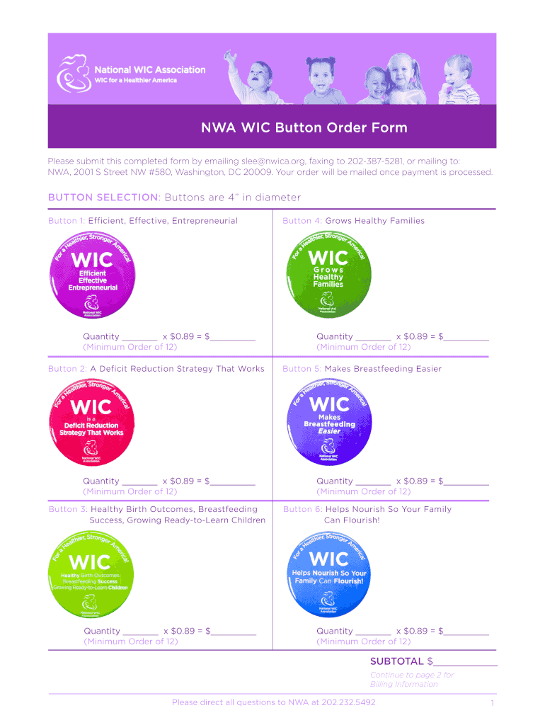Get the free NWA WIC Button Order Form - Paramount Communication Group