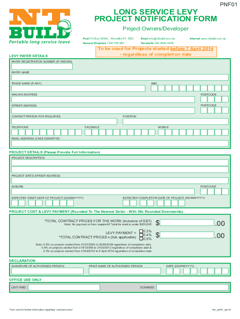PROJECT NOTIFICATION FORMPNF01Project Owners/Developer